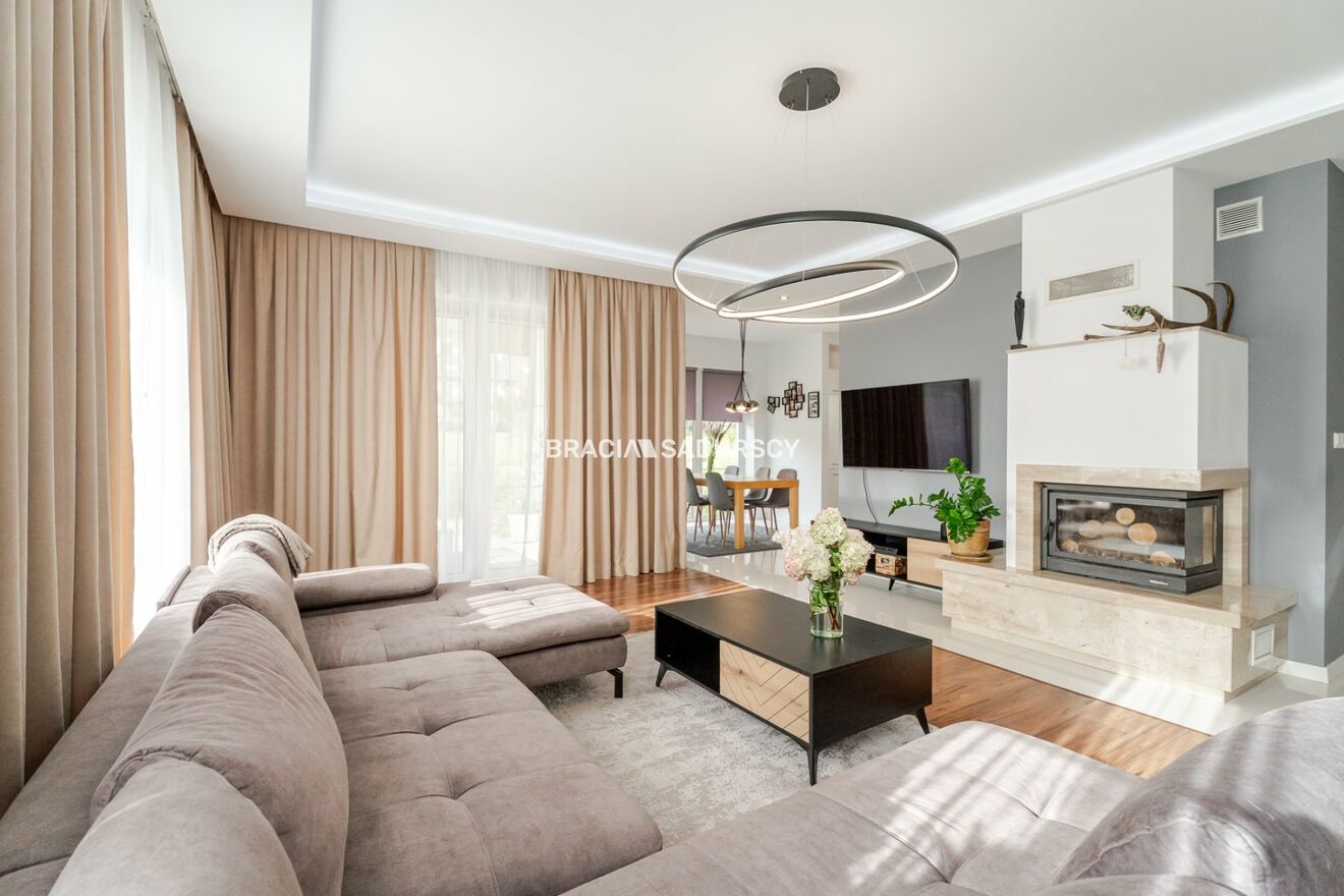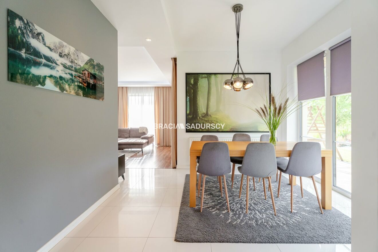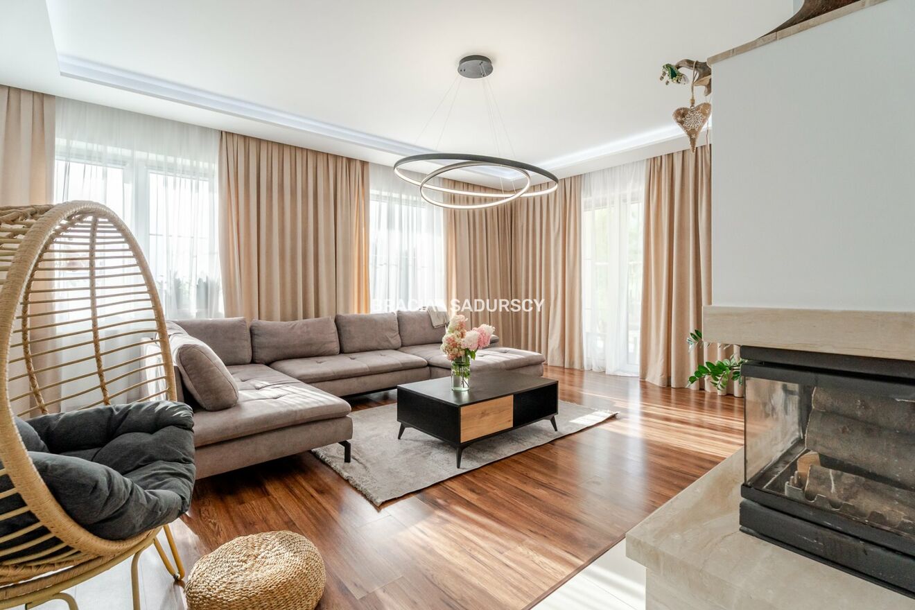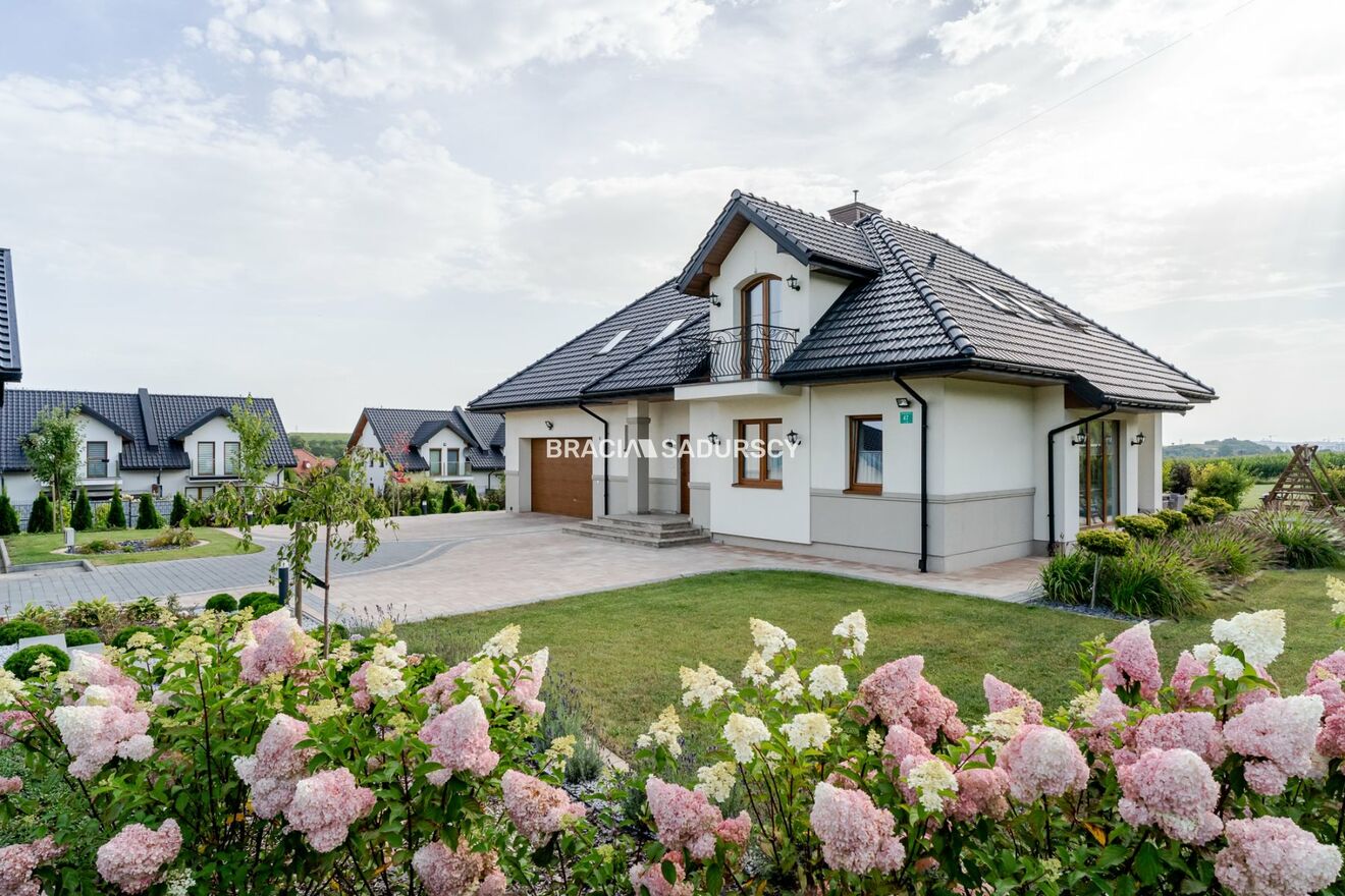 Biuro Nieruchomości Bracia Sadurscy prezentuje na sprzedaż komfortowy i elegancki dom wolnostojący o powierzchni całkowitej ok. 272,6 m² (użytkowa 208,7 m²), usytuowany na pięknej działce o powierzchni ok. 18 arów w miejscowości Węgrzce .