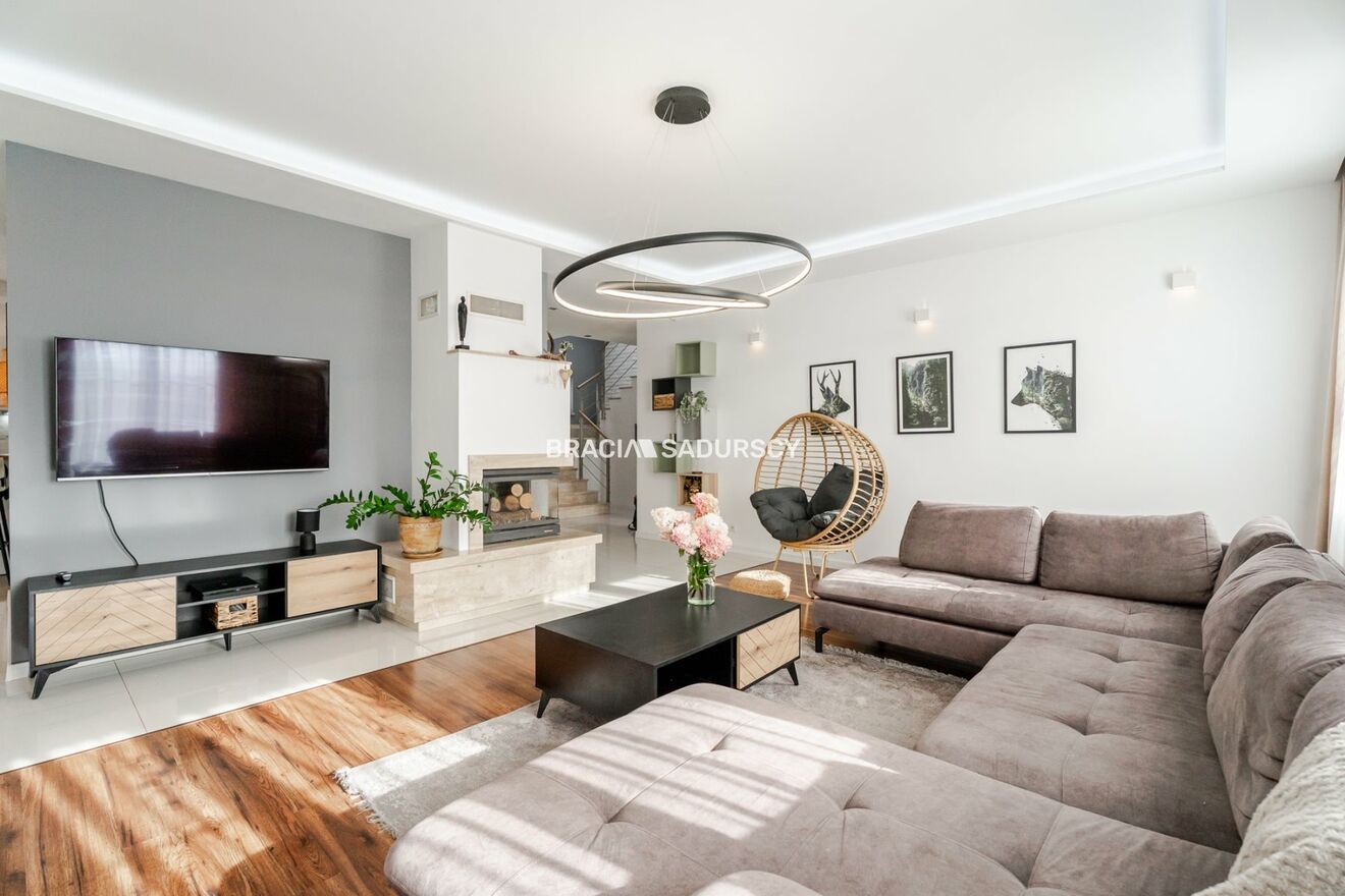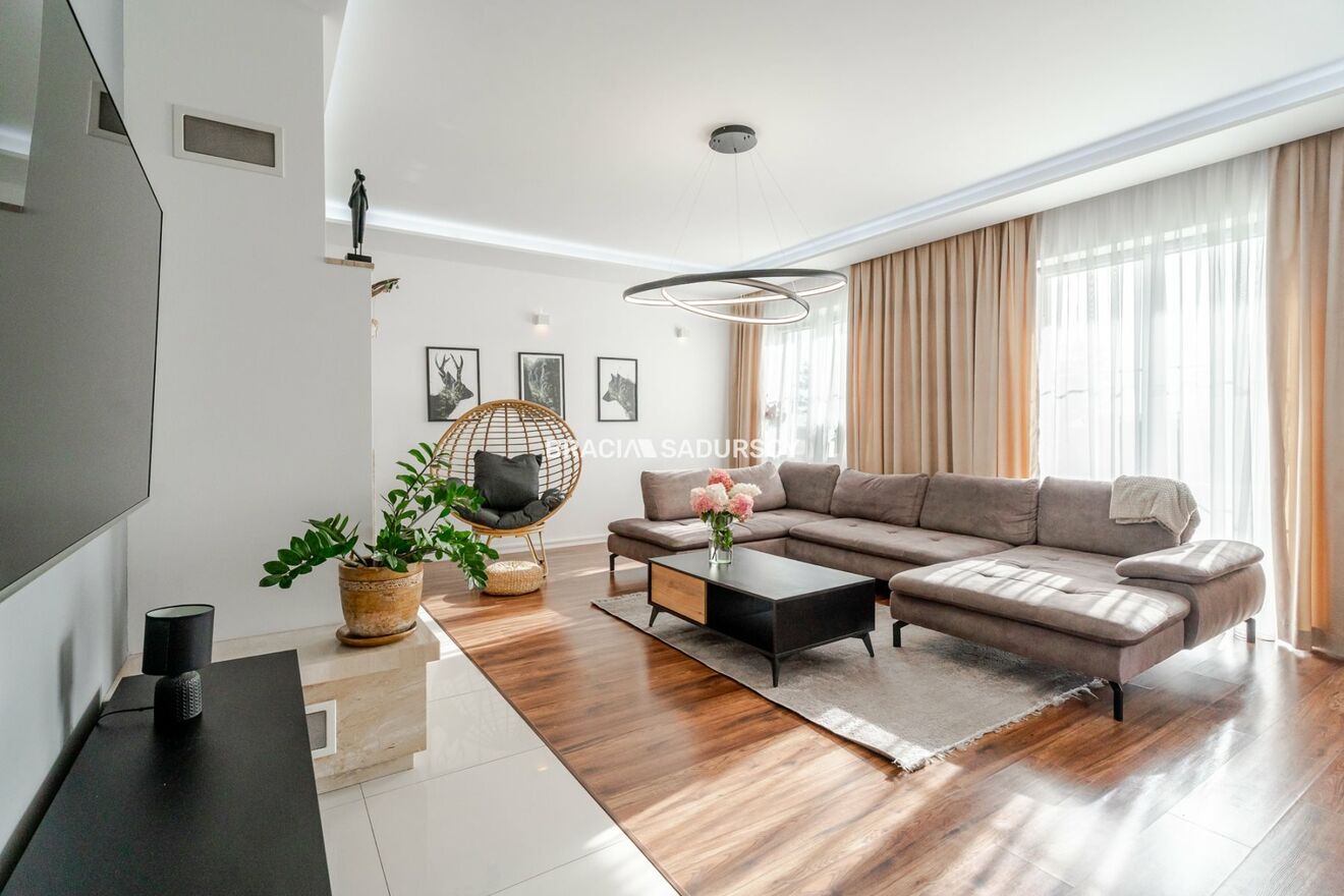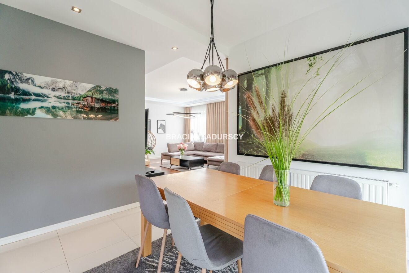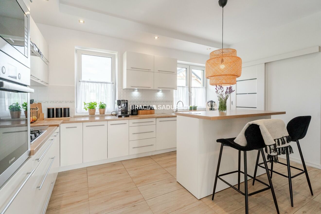 Biuro Nieruchomości Bracia Sadurscy prezentuje na sprzedaż komfortowy i elegancki dom wolnostojący o powierzchni całkowitej ok. 272,6 m² (użytkowa 208,7 m²), usytuowany na pięknej działce o powierzchni ok. 18 arów w miejscowości Węgrzce .