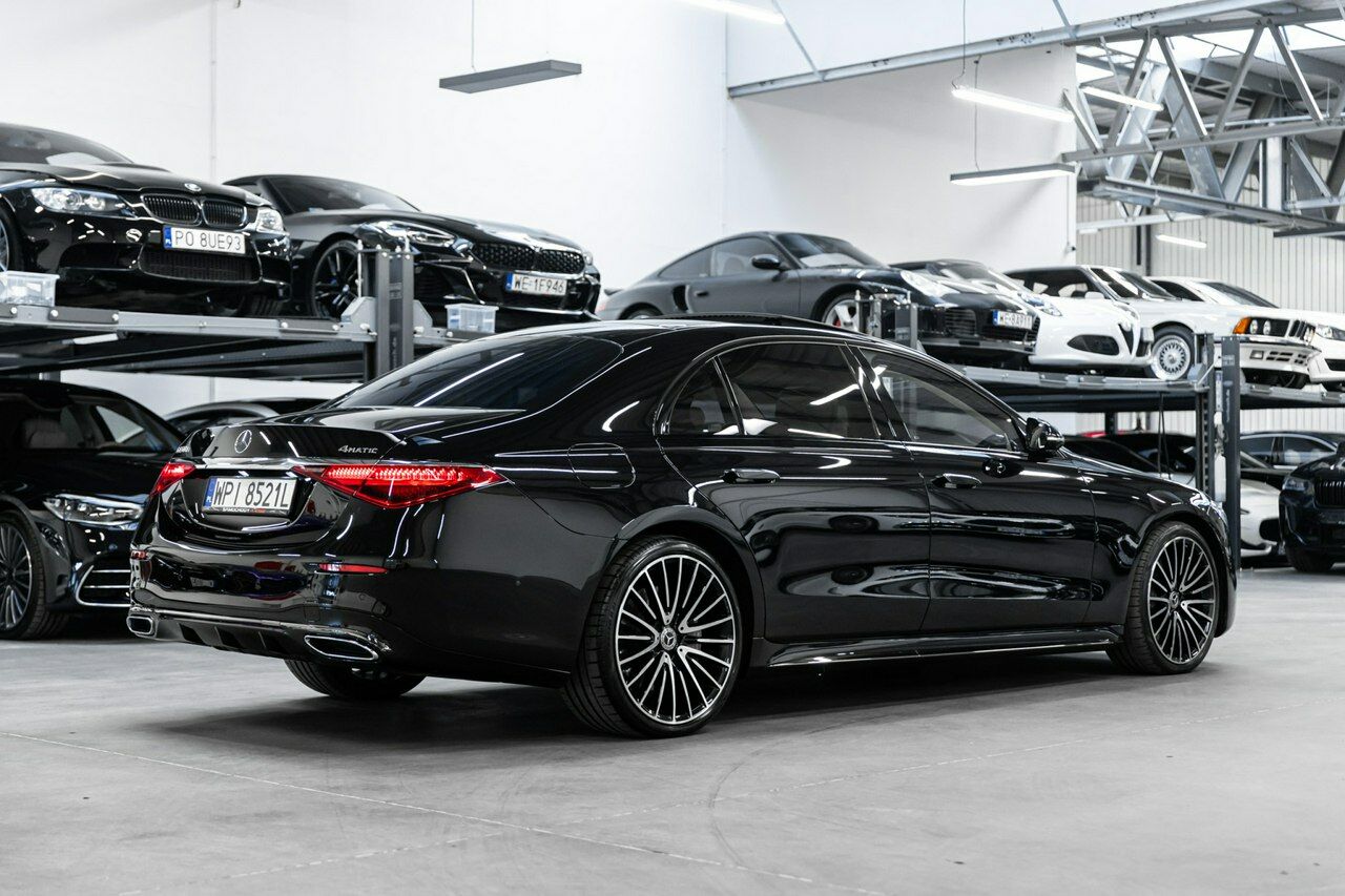 Mercedes-Benz S450d 4Matic Long 367 KM.Wyjątkowo bogato skonfigurowany egzemplarz, obejmujący wszystkie topowe dodatki takie jak zawieszenie E-Active Body Control, system nagłośnienia High End 4D, telewizję, zestaw rozrywki z tyłu, pakiet Exclusive, system masażu wszystkich foteli, karbonowe listwy wnętrza czy nawet tylne, czołowe poduszki powietrzne.